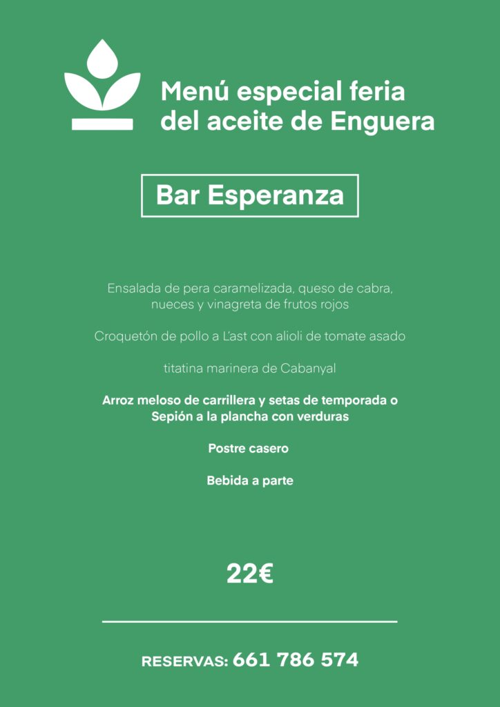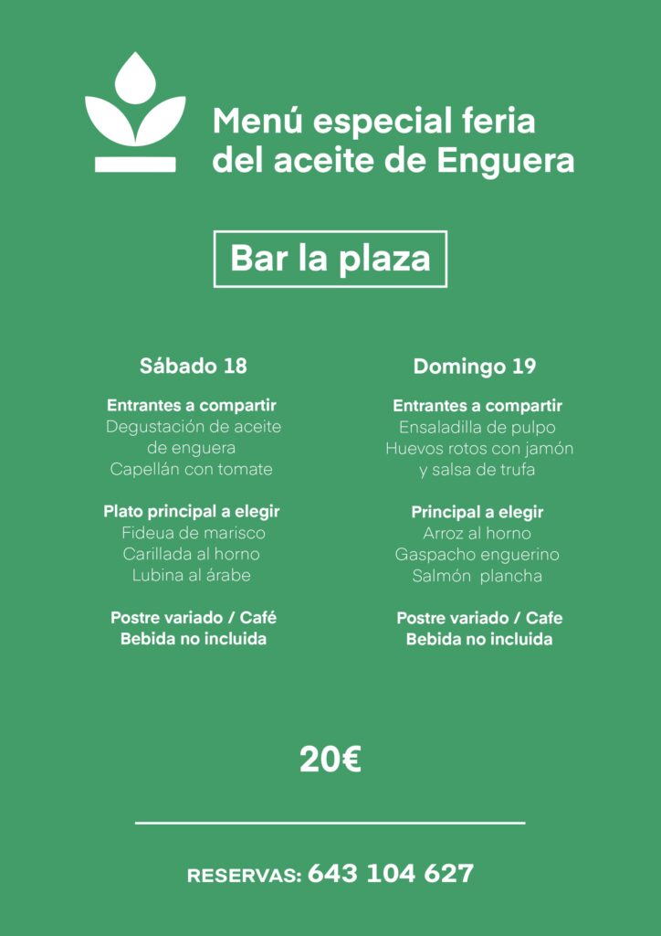 Además de los restaurantes que hay en la feria: Kaoba, Sirera, Los Arcos y El Industrial, los restaurantes de Enguera ofrecen menús especiales con motivo de la celebración de la Feria del Aceite